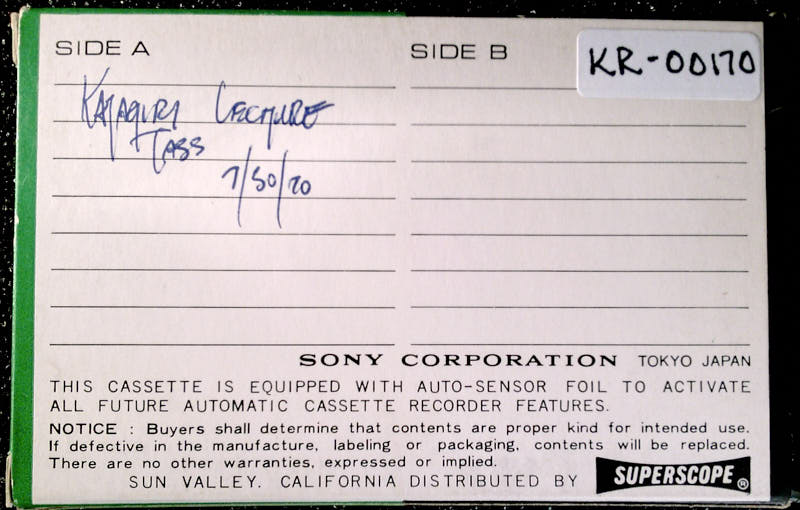 Additional text: This cassette is equipped with auto-sensor foil to activate all future automatic cassette recorder features.