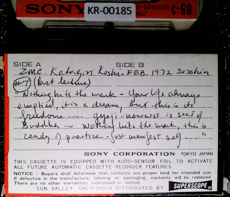 This is Roshi. This is Katagiri Roshi. Then, sometimes I think, are you Sensei? Are you Roshi? Are you, or you too, young guy? Are you students? I am Roshi. If so, why don't you control your mind? I'm sorry. Poor Katagiri. Poor Katagiri. So, strictly speaking, there's nothing to control. Nothing to control by yourself. It's pretty difficult. Because the bottom of my life is always empty,
