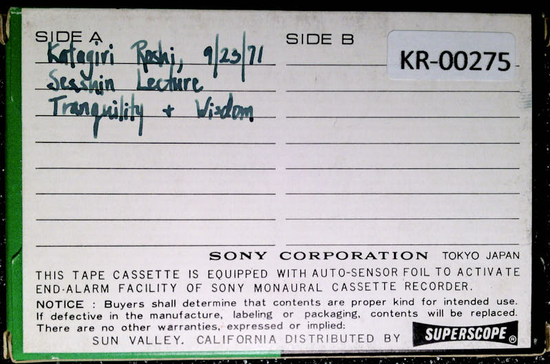 Possible Title: Sesshin Lecture Tranquility & Wisdom