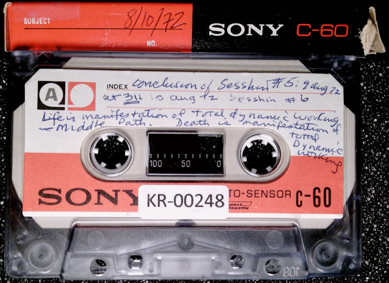 Additional text: At 31: 10 Aug 72, S.F., Sesshin #6 Kat. Roshi. Life is manifestation of Total Dynamic Working \u2013 Middle Path.