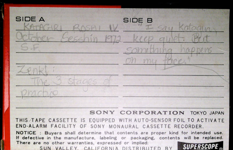 Lots of noise. Wait a minute. Then one month ago, he knew already, when, where I am going. He knew so well. This destination is the case not only for Suki Roshi, but also for everybody. Then he realized, very clear, where I am going. Then he said, I am tired. I want to take over you, take over Zen center to you. He said. At that time, I think, he reflected upon his life. For 60 years,