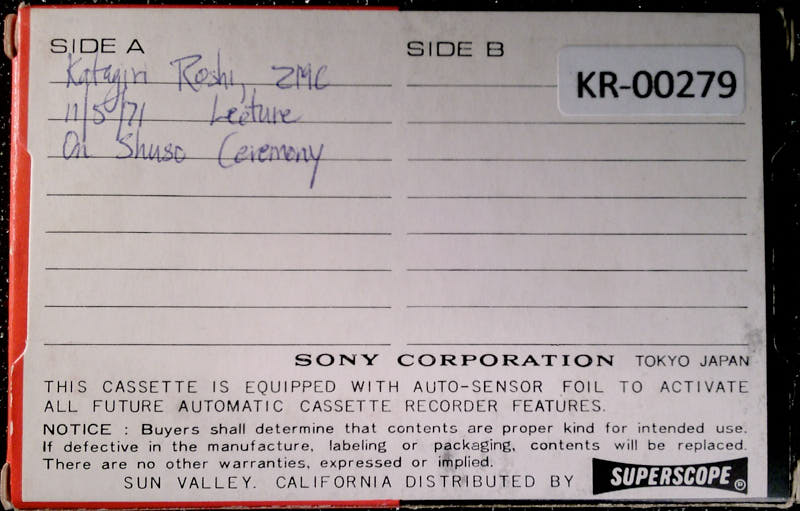 It's really nonsense. You cannot find any meaning. It's really just a festival. Then they have the shinsan ceremony. This ceremony is just for the new abbot of the temple. I think they will have the same ceremony pretty soon in San Francisco. Then in the morning they have a shinsan ceremony for the newly abbot, and in the afternoon they have a special ceremony for shuso, shuso ceremony.