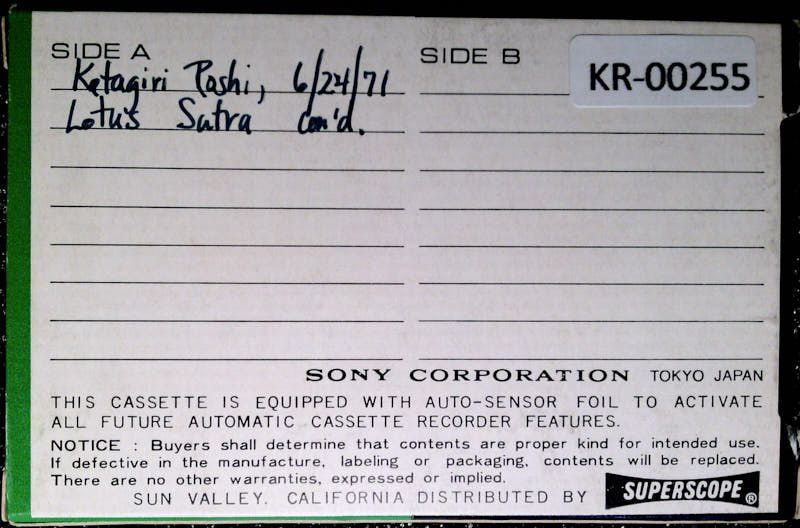 It is maybe true nature of Katagiri. The true nature of Katagiri doesn't have a special fixed idea, which is called Katagiri, which is liable to enable man to be tossed away, you know, by it's name, conception. All conditions. Japanese, Zen priest, all Tathagata in Tathagata, in Zen center. Oh, he is an assistant of Suzuki. Yes.