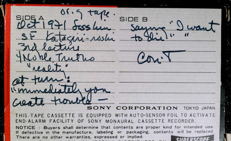 Additional text: orig. tape, 4 Noble Truths, reality, at turn Immediately you create trouble-